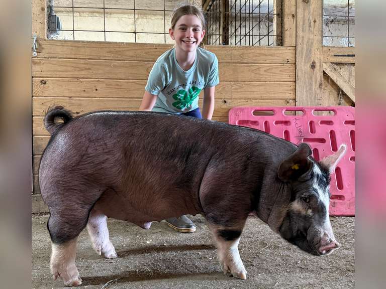Zeus is a 256 lb. Berkshire who has spent that last four months rooming with his fellow Berks, Hera and Athena. Tonight, Zues is handled by Madilynn James, a 7th grader at Central Middle School, who loves ballet and spending quality time with her family and friends. As you can imagine, Zues has been the talk of the barn with his tiffs with Hera and Athena, but always enjoyed his free time out of the stall to visit all the other lady pigs at the barn. Don't miss our on this god of a pig!